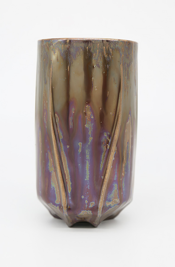 Porcelain with metallic-iridescent glaze, black matte inside liner glaze.SIZE: 16oz